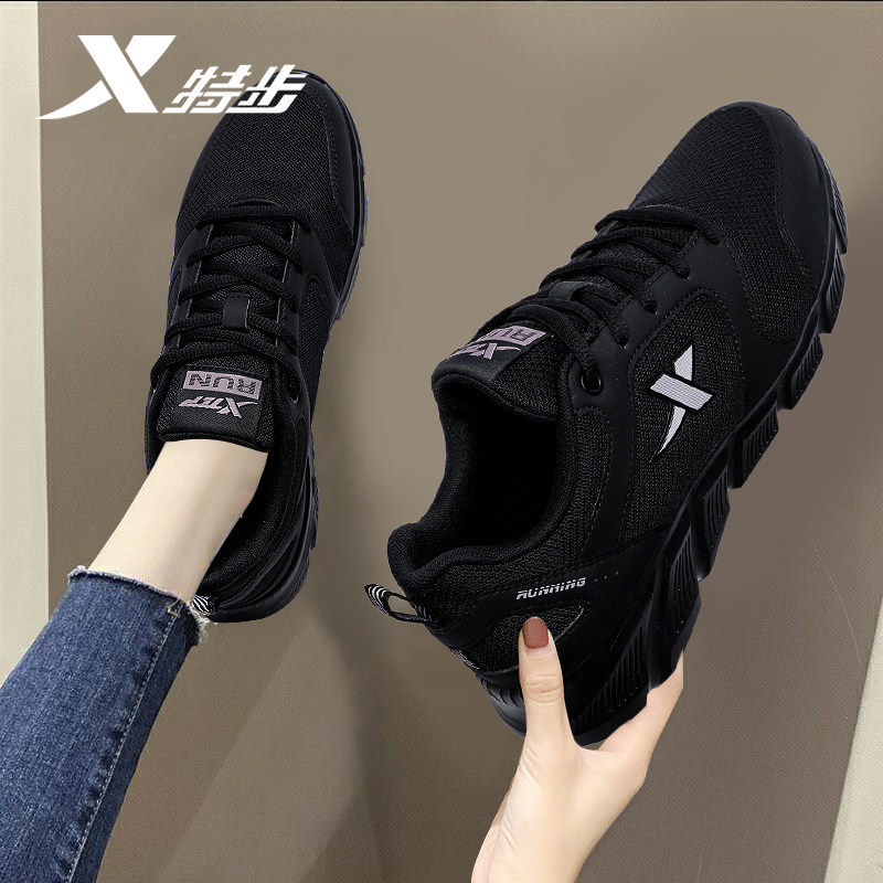特步女鞋2026新款春季跑步鞋网面休闲鞋子官方正品黑色透气运动鞋