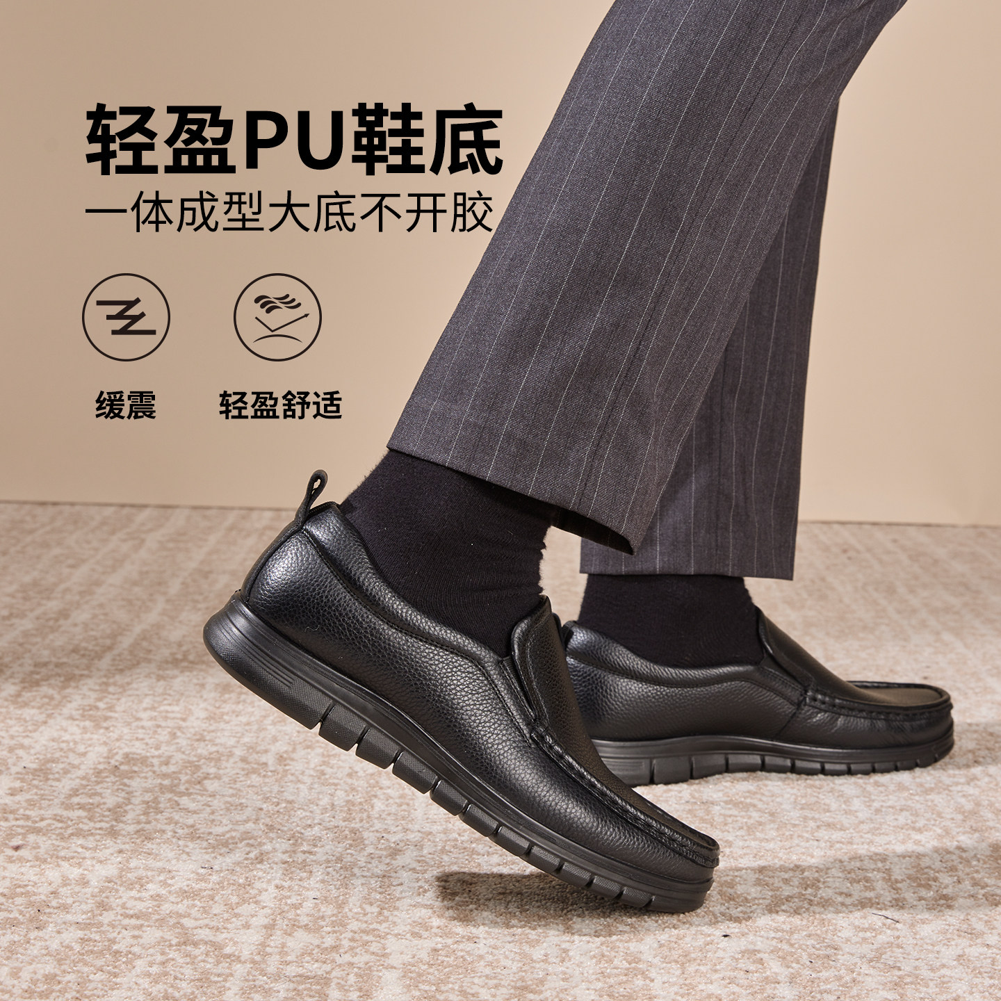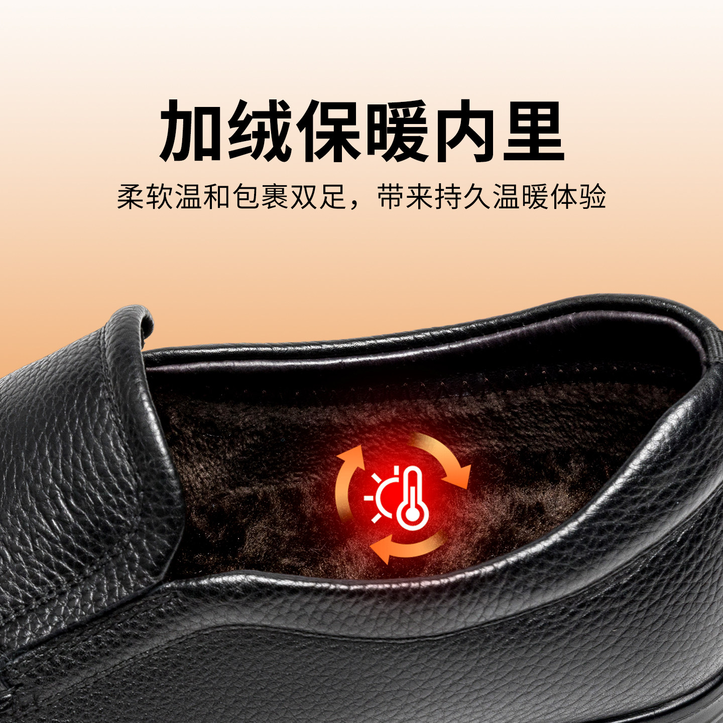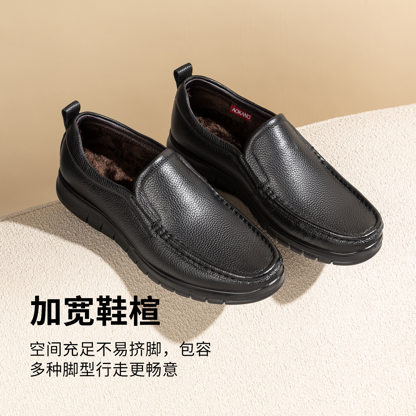 奥康2025冬季男鞋加绒保暖真皮商务正装舒适一脚蹬套脚皮鞋