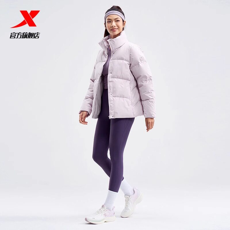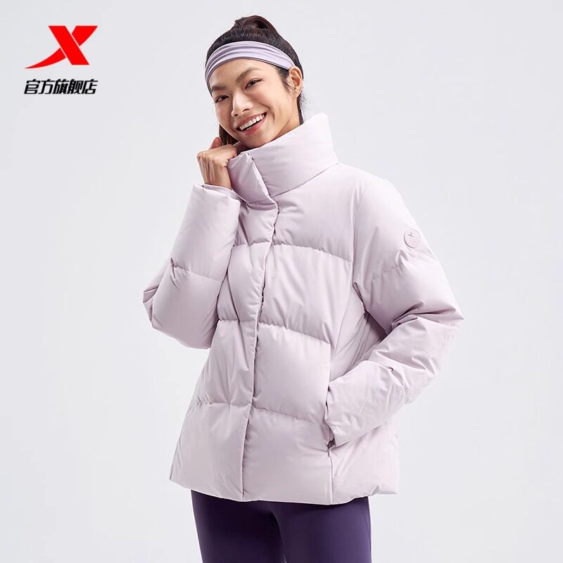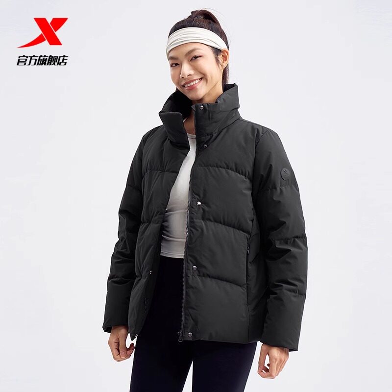 特步羽绒服女款冬季短款新款黑色白色羽绒服保暖976428190131
