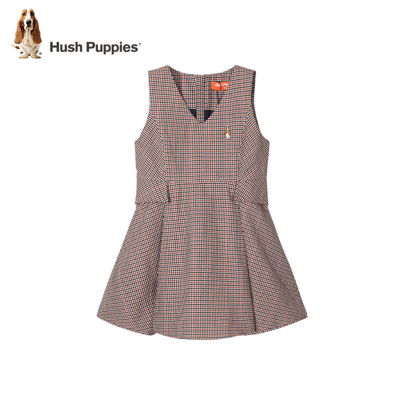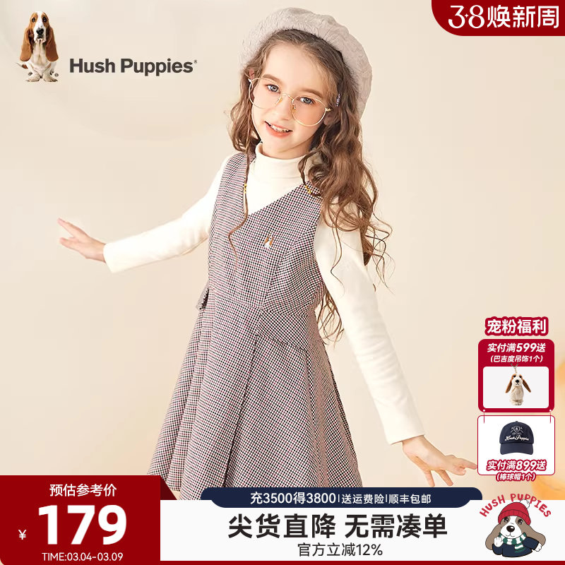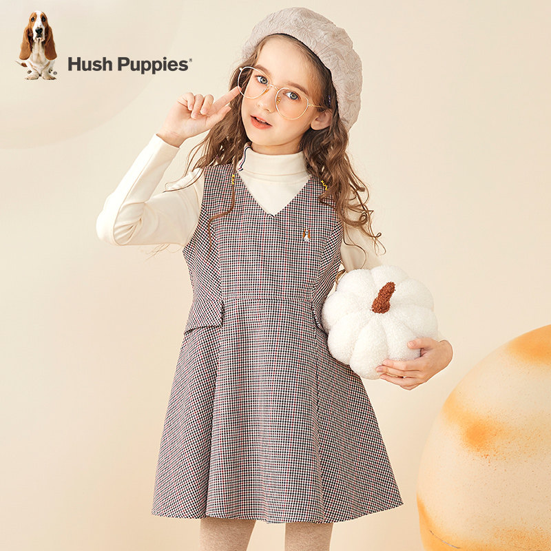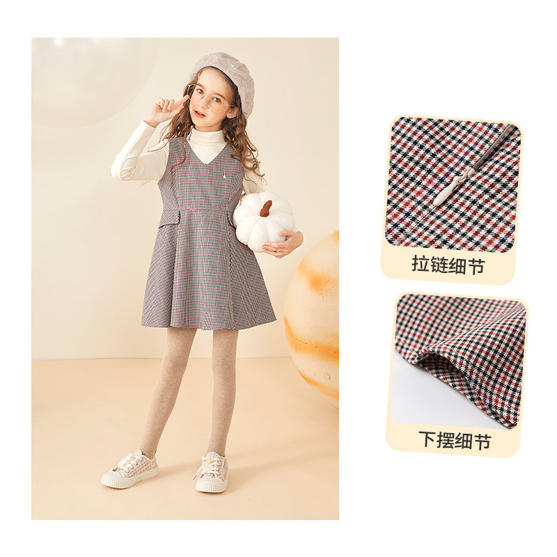 暇步士童装女童连衣裙春秋新款大童学院风格纹裙子儿童V领马甲裙