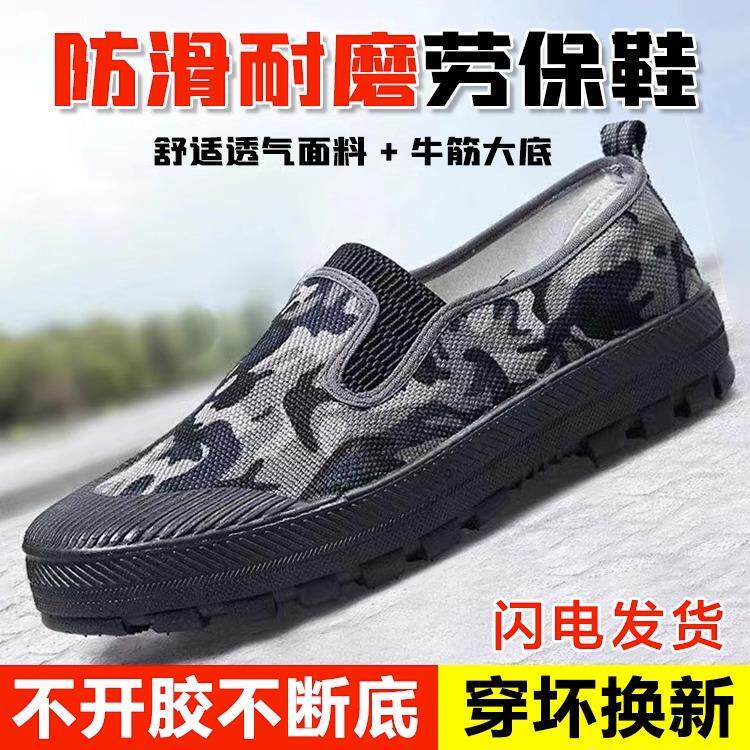 解放鞋子迷彩一脚蹬劳保球鞋男款春夏男士工地工作干活男鞋无鞋带