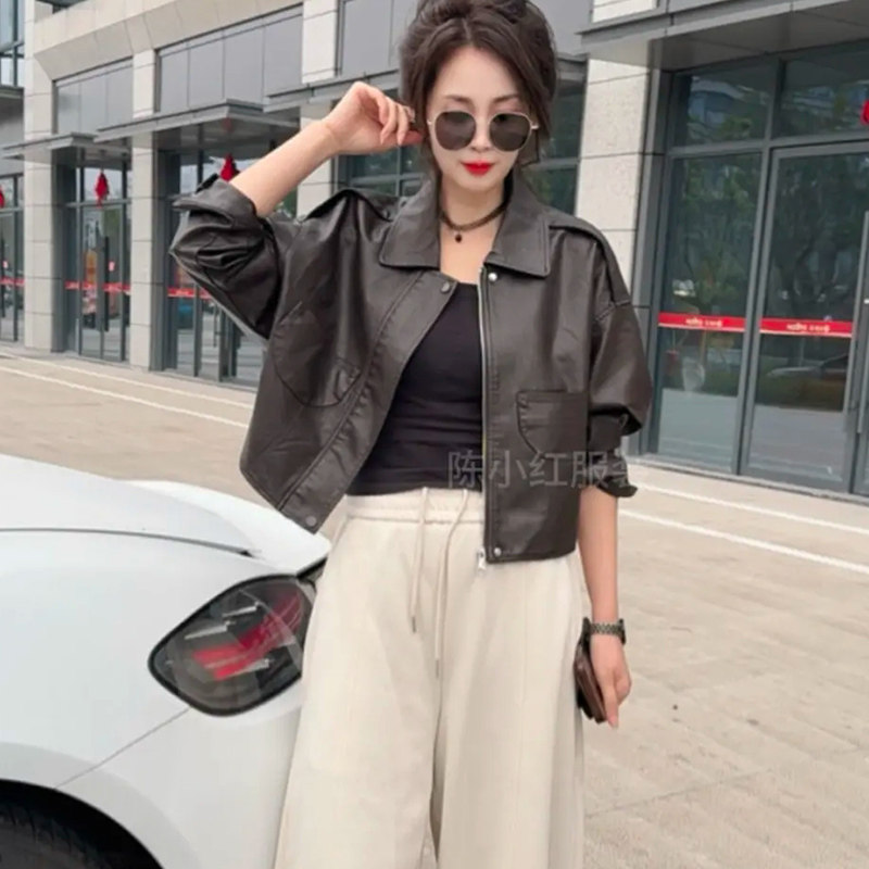 春款皮衣外套女短款2026新款翻领显瘦机车服pu皮夹克休闲时尚上衣