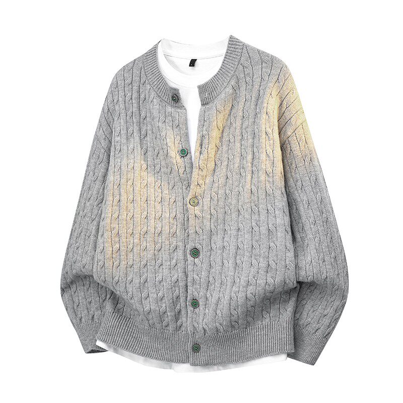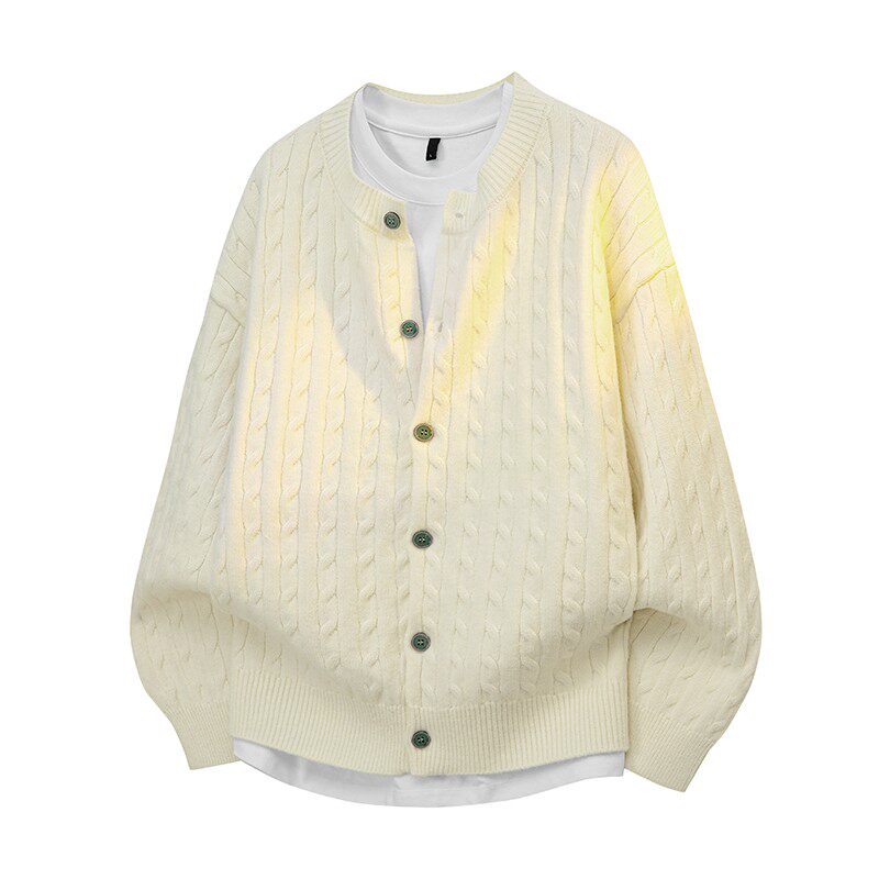 本命年红色针织开衫男士宽松日系扭花简约高品质毛衣外套秋季新款