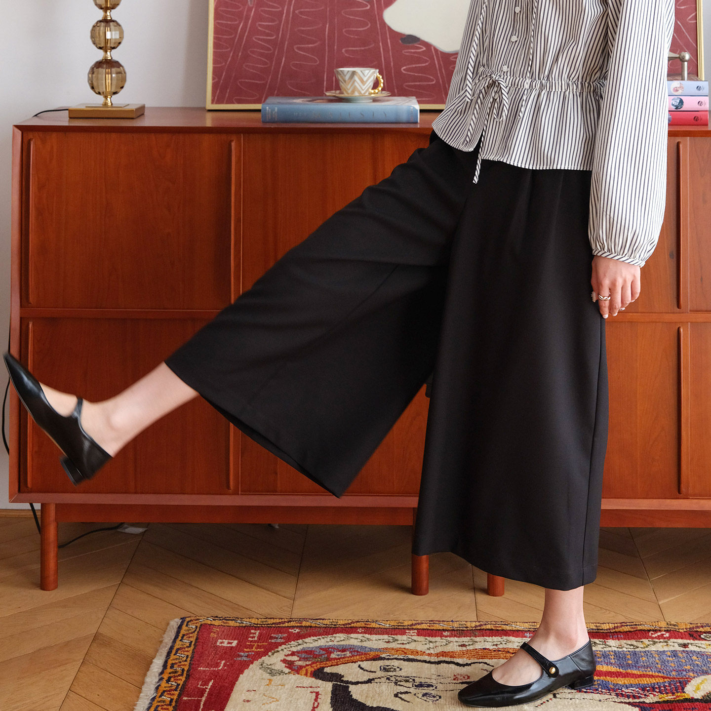 然若 清凉抗皱 黑色裤子女款2026新款夏季八分休闲裤阔腿裤裙裤