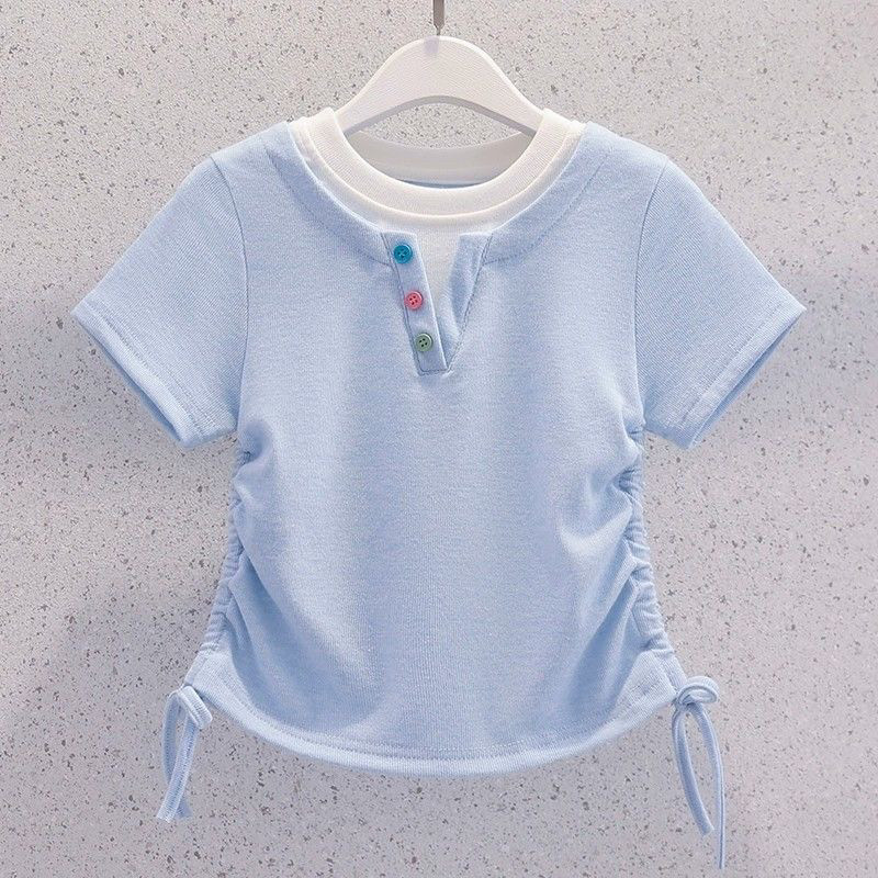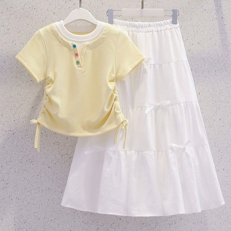 女童超好看夏装裙子套装2025新款薄款洋气儿童假两件短袖半身长裙