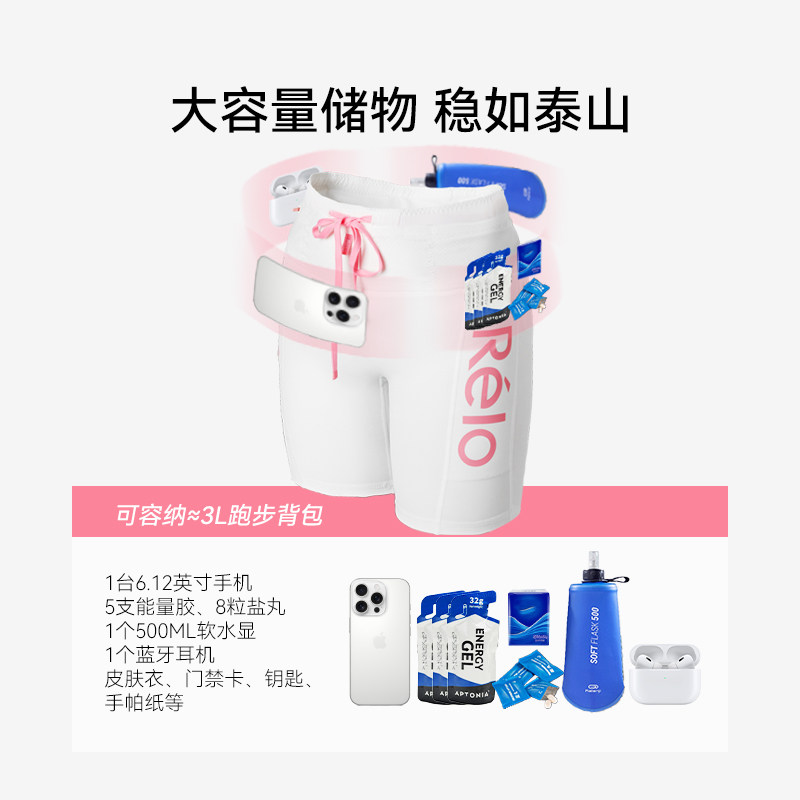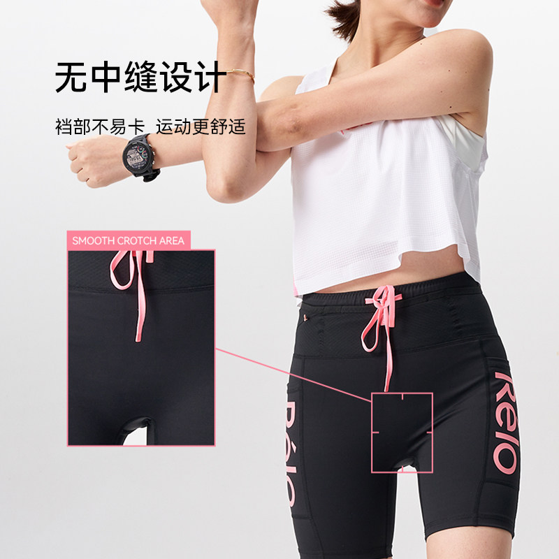 relo专业跑步压缩短裤女运动健身紧身提臀多口袋马拉松竞速腰包裤