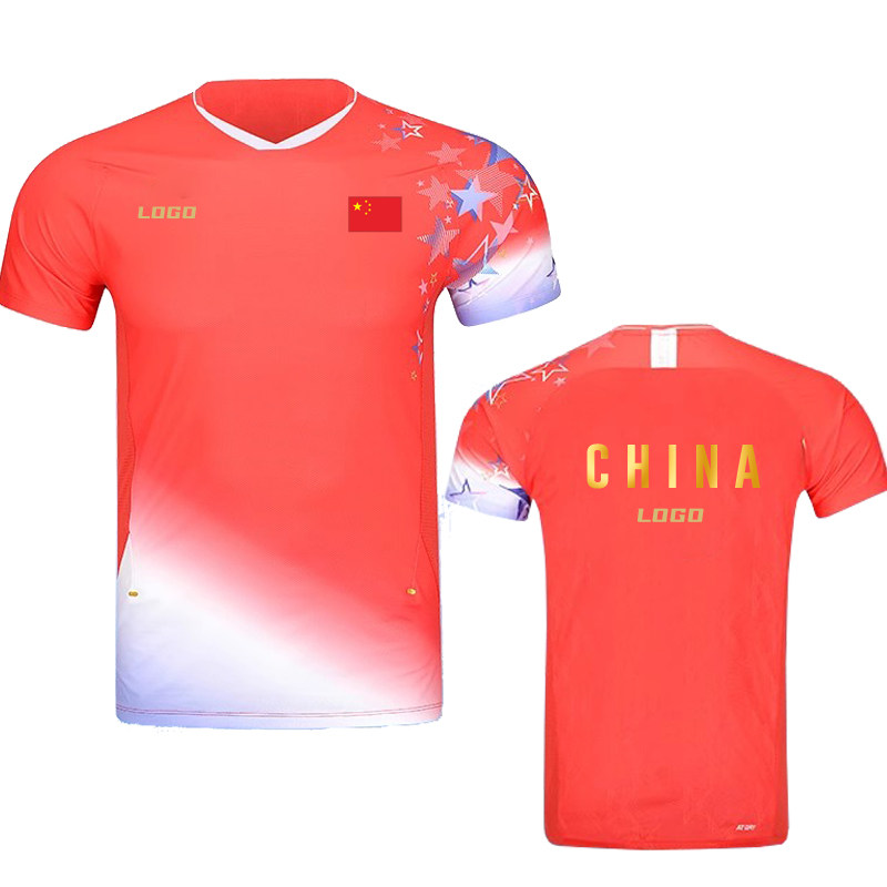 国家羽毛球队新款中青队大赛服短袖速干上衣儿童训练比赛服印字