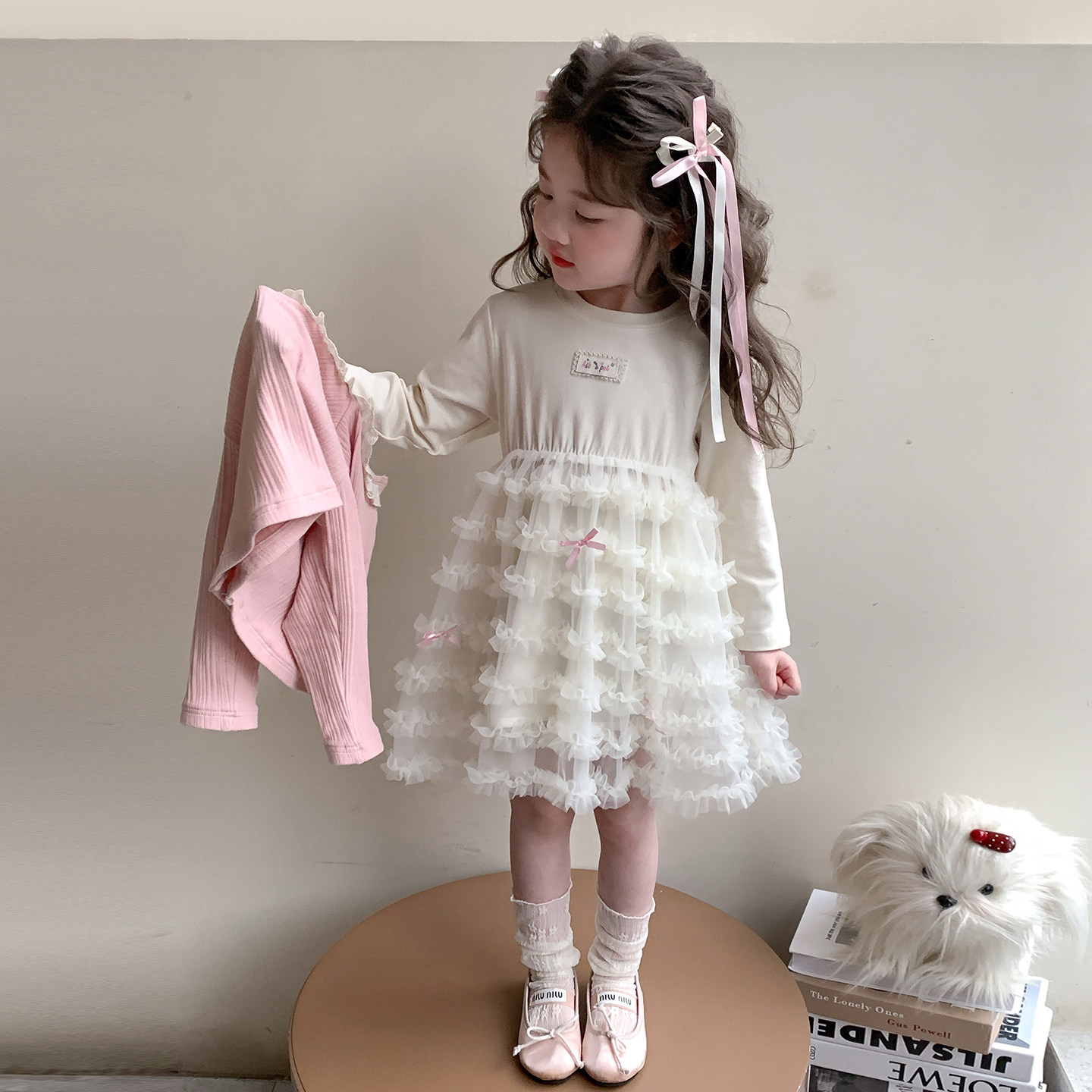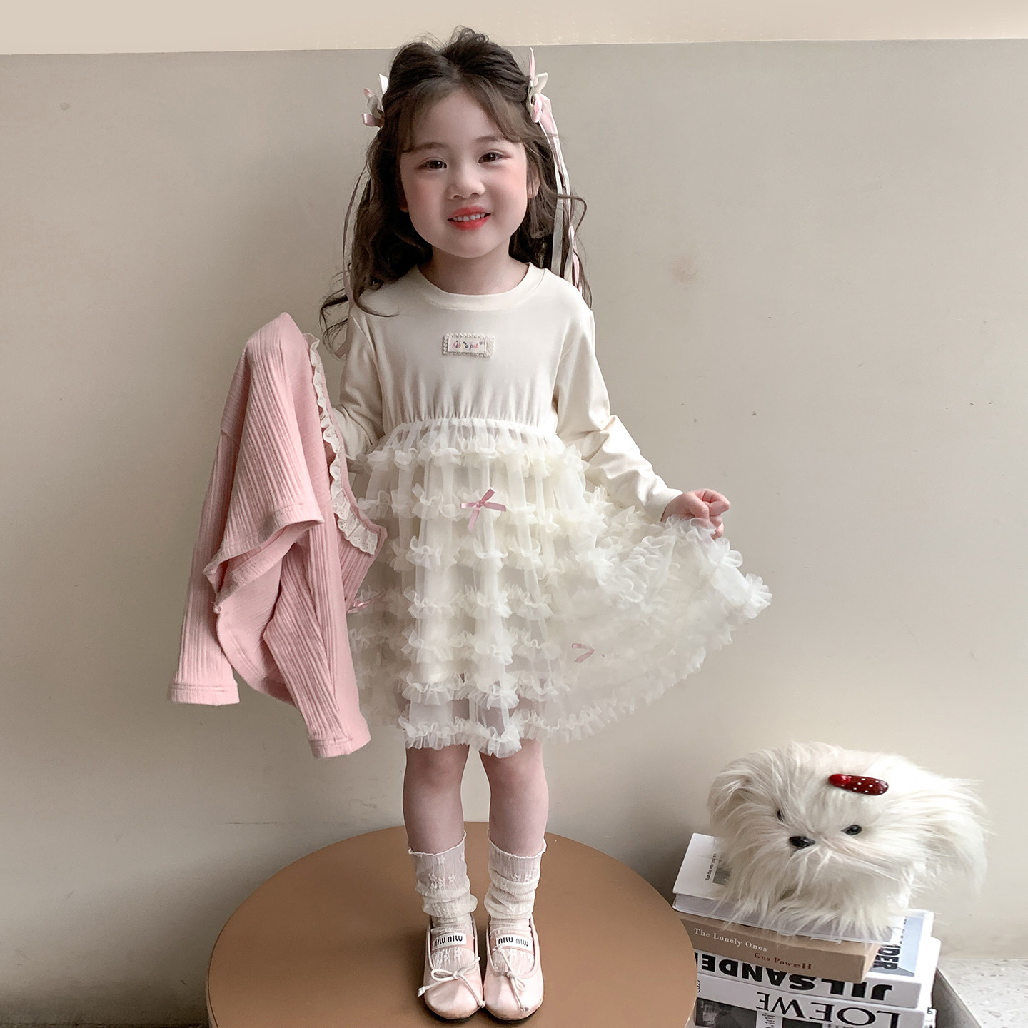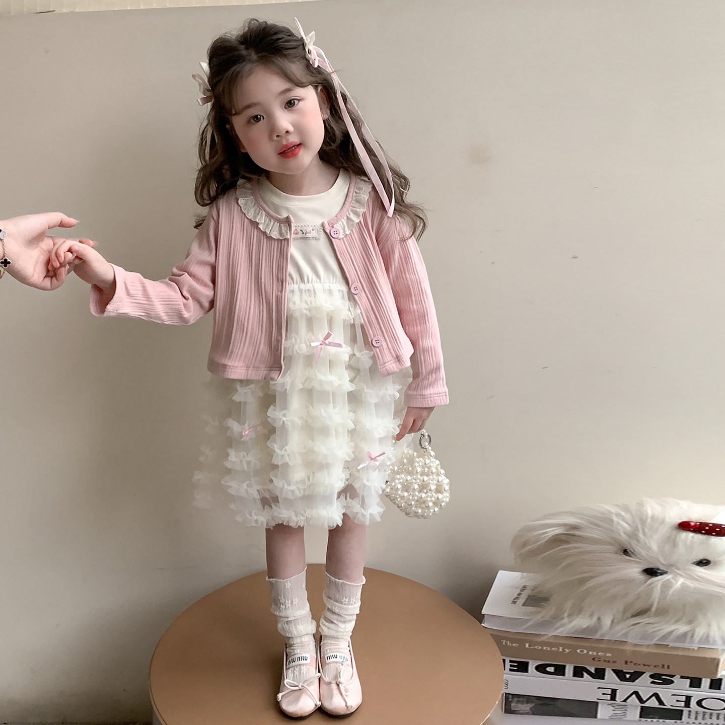 女童套装春秋2026新款儿童春季洋气女宝宝时髦春装裙子网纱连衣裙