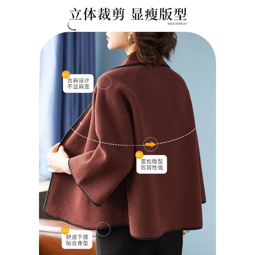 年轻妈妈春秋装短款毛呢外套2025新款中老年女装双面呢高贵上衣服