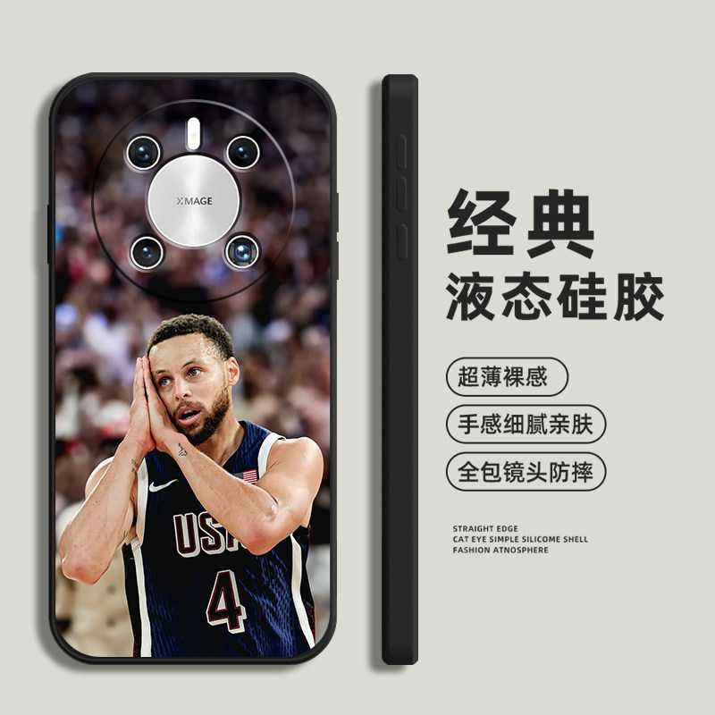 库里勇士队nba篮球衣星适用华为mate70pro手机壳黑色60pro+新款40E硅胶软30Epro全包Z20X来图定制畅享S50PLUS