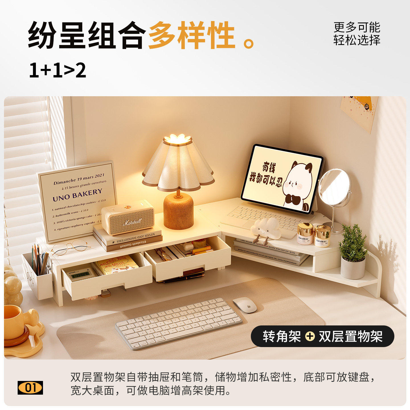 电脑增高架桌面显示器抬高支架工位拐角置物架办公桌上三角形支架
