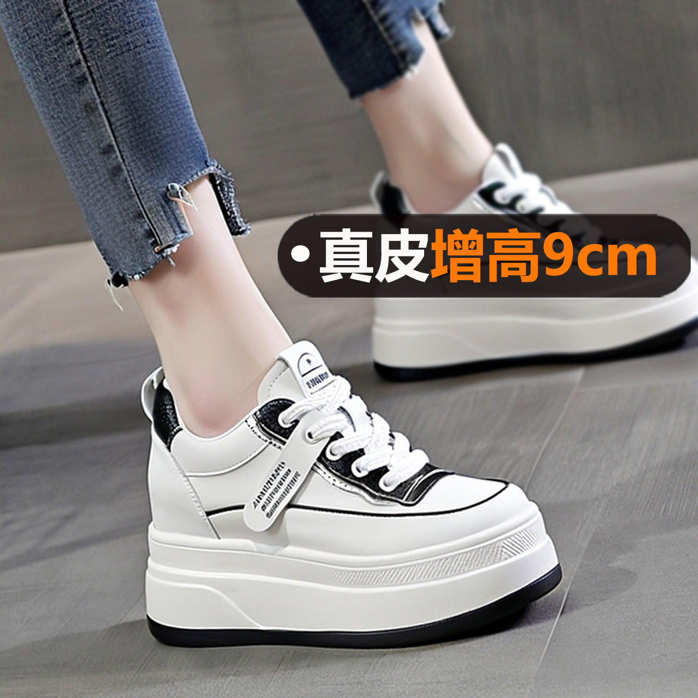 真皮小白鞋女厚底内增高9cm小个子百搭女鞋2026新款春季软底轻便