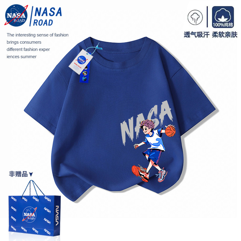 NASA联名男童套装夏季纯棉运动短袖2026新款儿童篮球服潮牌两件套