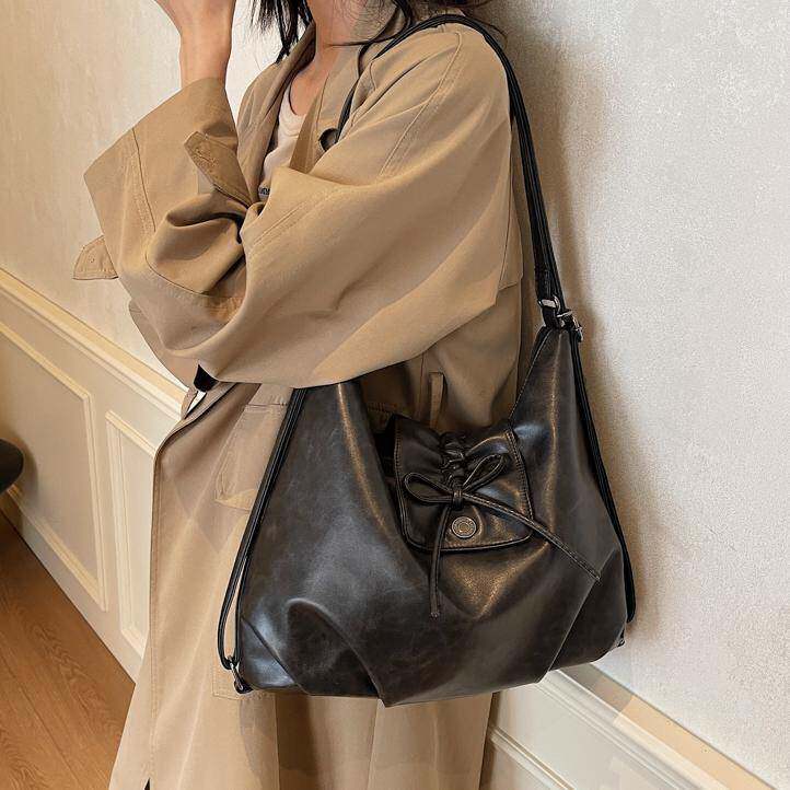 专柜品牌今年流行爆款褶皱包包女式2026新款百搭复古单肩包大容量
