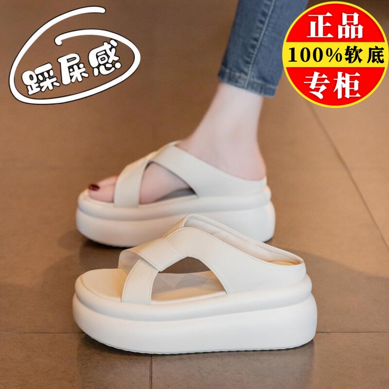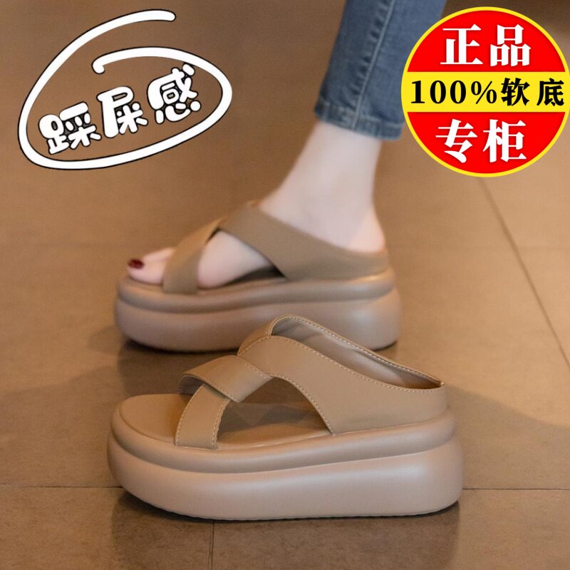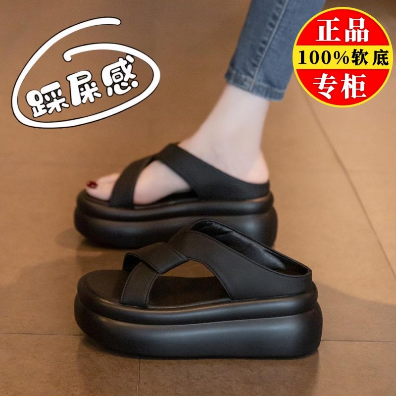 品牌真皮厚底凉拖鞋女夏外穿2025新款增高防滑软底不累脚沙滩凉鞋