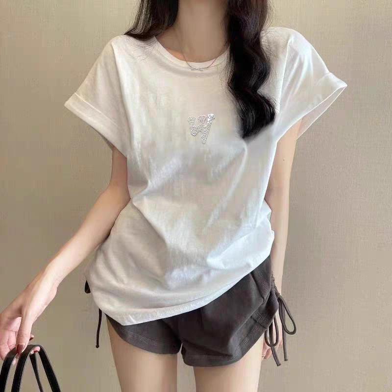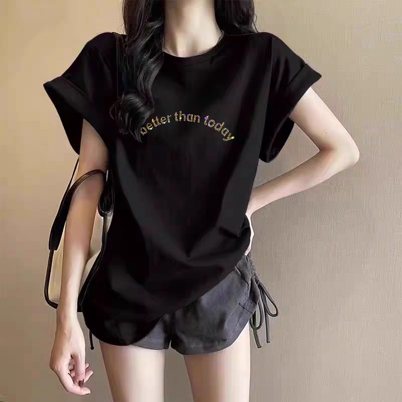 纯棉烫钻字母t恤女短袖2026年夏季新款宽松百搭圆领半袖体恤上衣