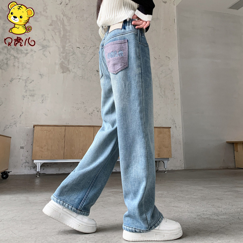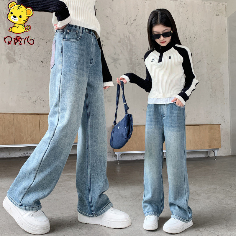 女童裤子春秋外穿2026新款中大童直筒阔腿长裤女孩春季儿童牛仔裤
