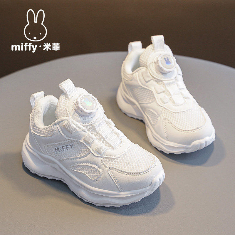 米菲女童鞋子2026春夏季新款儿童透气网面女孩单网薄款白色运动鞋