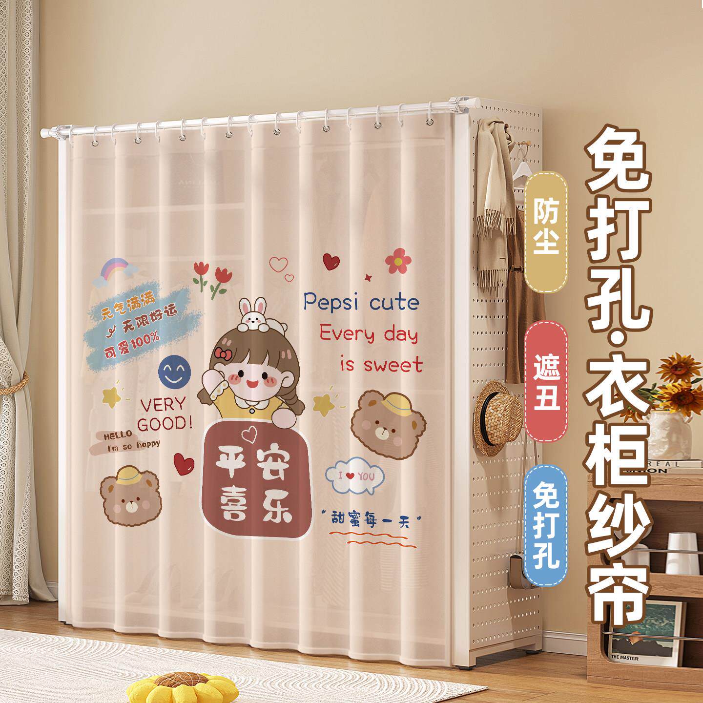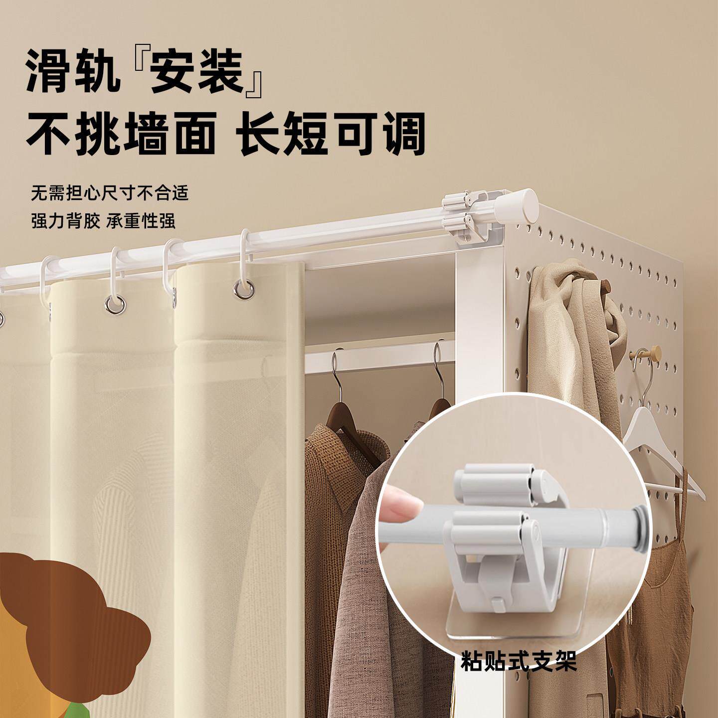 无门衣柜门帘隔断帘防尘遮挡帘开放式金属衣架免打孔滑轨遮丑帘