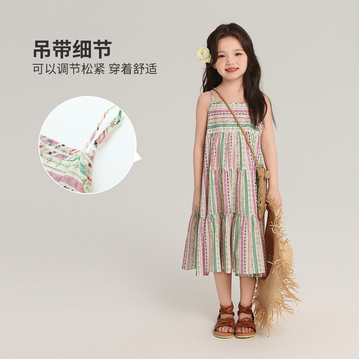 布丁哈鲁童装夏装女童洋气裙子2026夏季新款甜美百搭吊带连衣裙