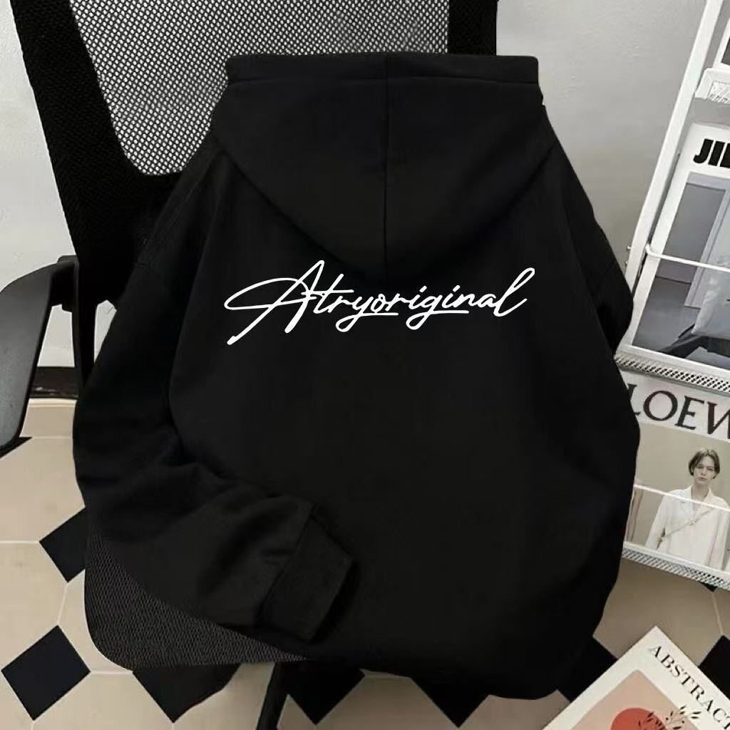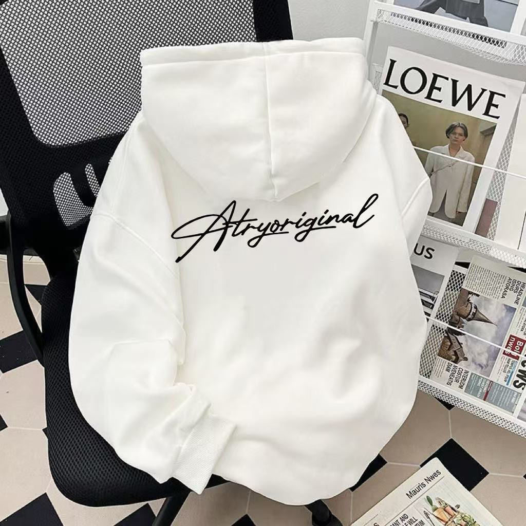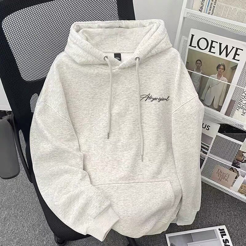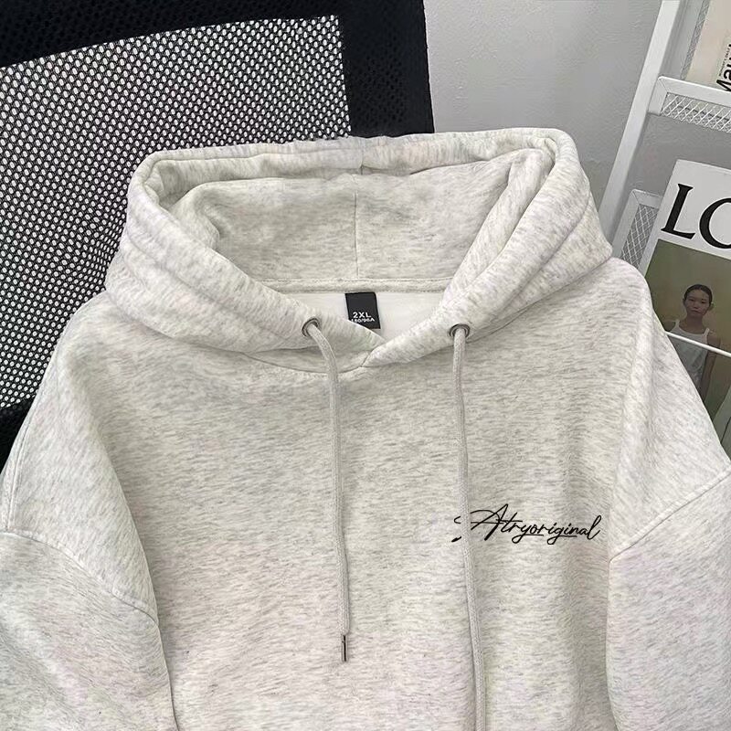 潮牌连帽卫衣男女童百搭春秋冬季加绒加厚美式字母印花上衣外套