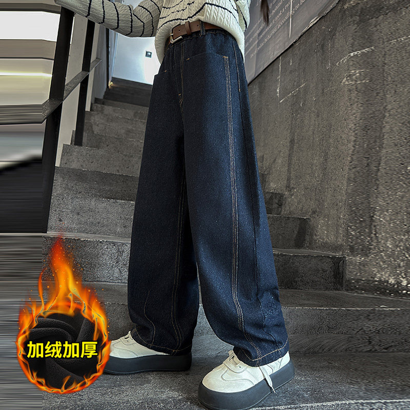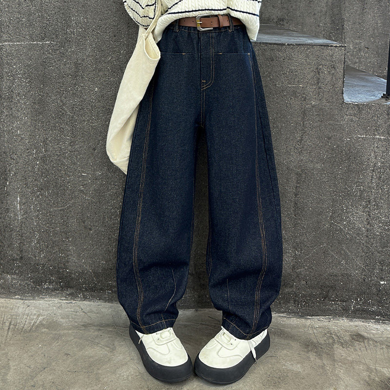 女童牛仔裤2026新款春装初中生女孩裤子青少年儿童弯刀裤宽松大童