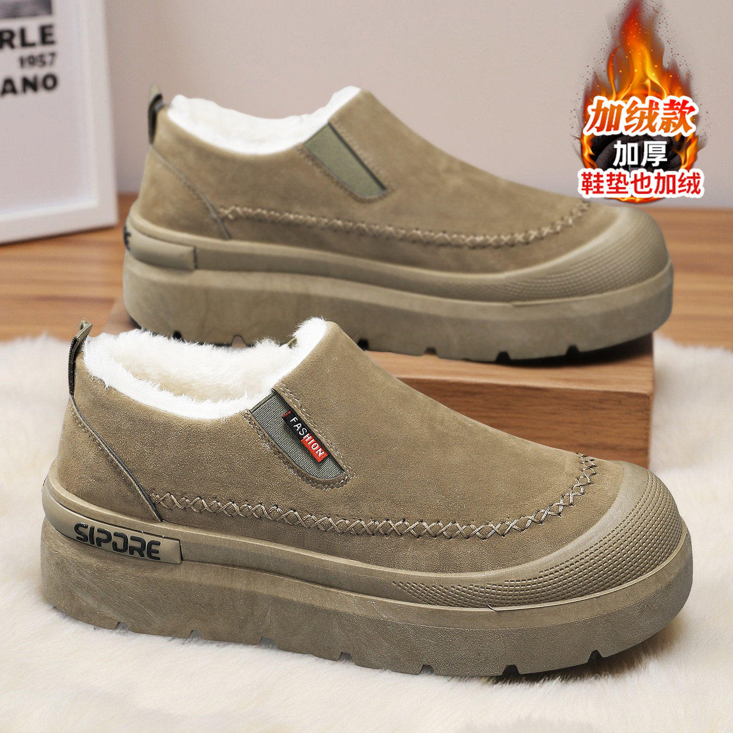 合成鞋业小土豆勃肯男鞋冬季加绒加厚全包软底一脚蹬增高厚底大头