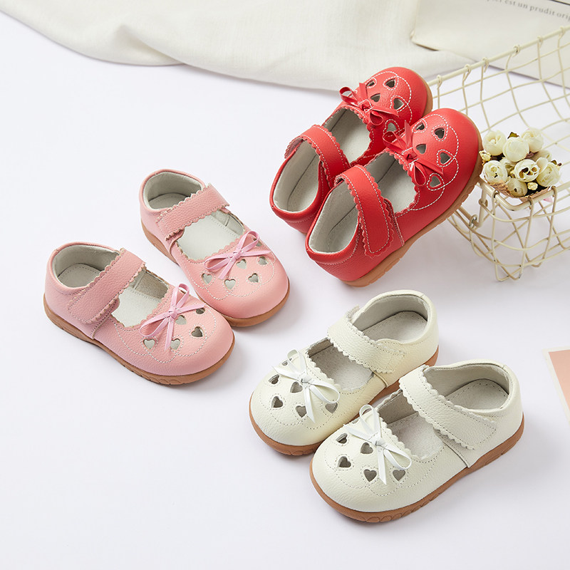 女童真皮镂空爱心单鞋胖脚宽肥poupoumi童鞋外贸1到3岁宝宝鞋4岁