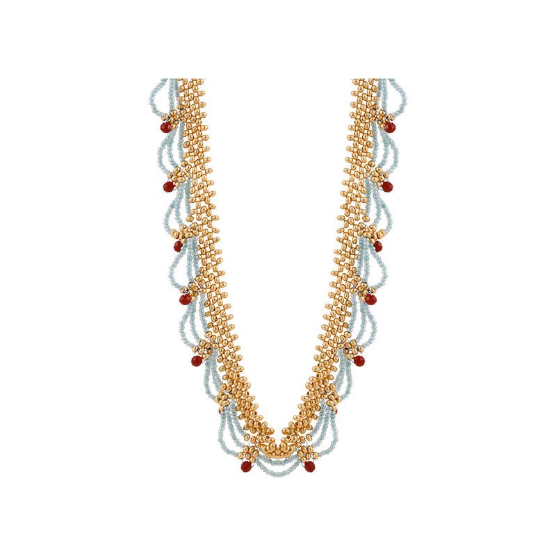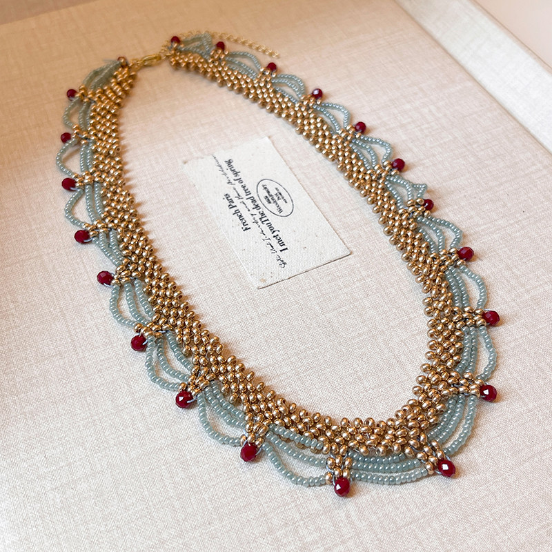 多层蕾丝红蓝撞色毛衣项链女款2026新款颈链高级感轻奢小众锁骨链