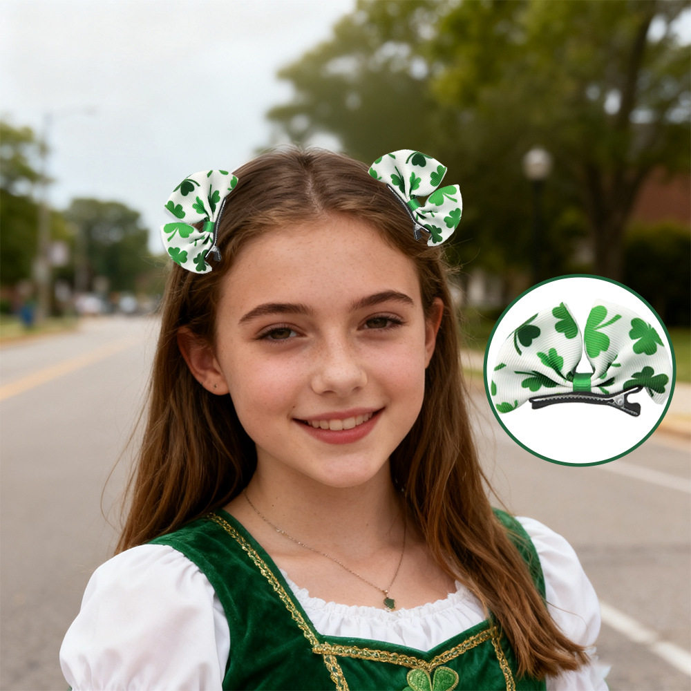 爱尔兰节发夹三叶草蝴蝶结发卡头饰圣帕特里克节派对装饰儿童发饰