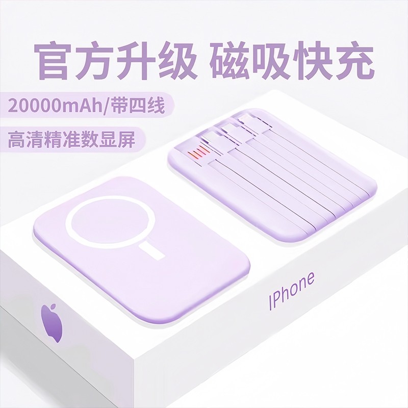 磁吸充电宝自带线【新国标3C认证】2026新款大容量快充超薄小巧便携无线适用苹果17专用手机20000毫安