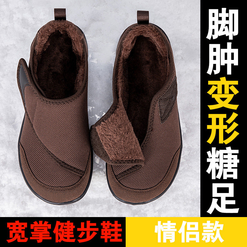 老人鞋女款二棉鞋冬季加绒老年鞋奶奶加肥脚肿大头鞋防滑妈妈鞋子