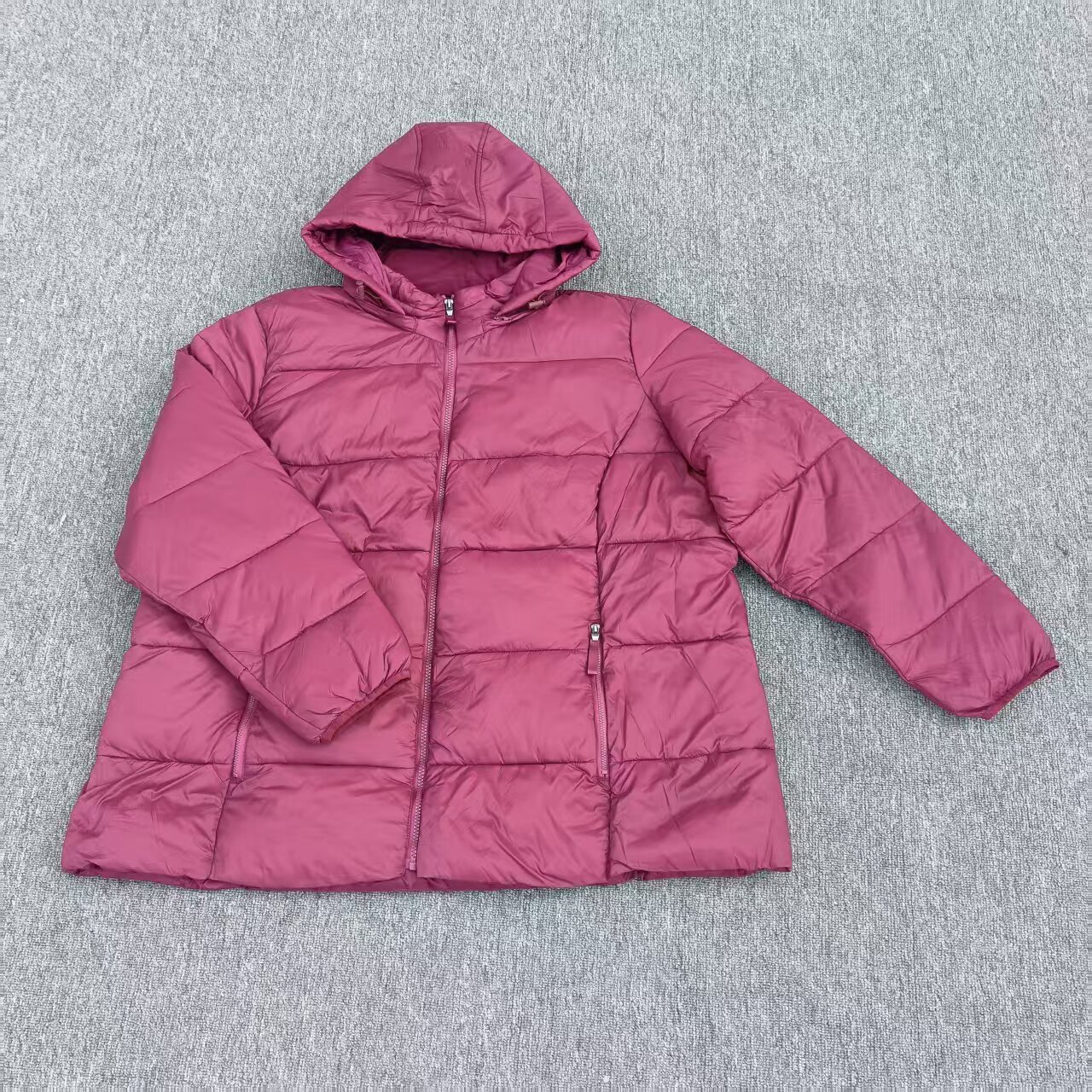 欧美原单女款超轻超柔羽绒棉棉衣轻薄大码MM可拆卸帽休闲秋冬棉服