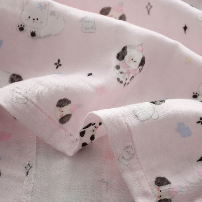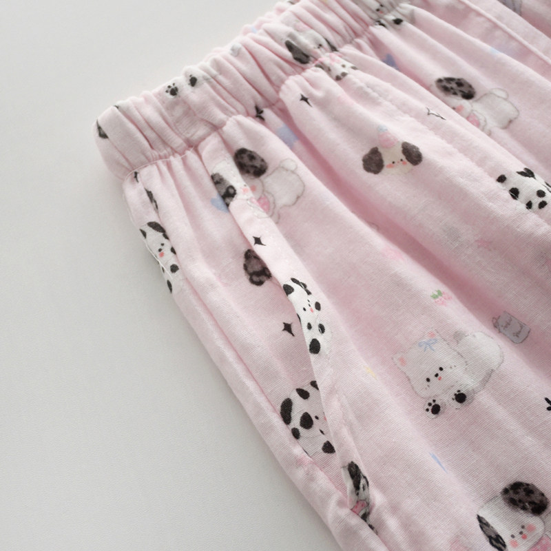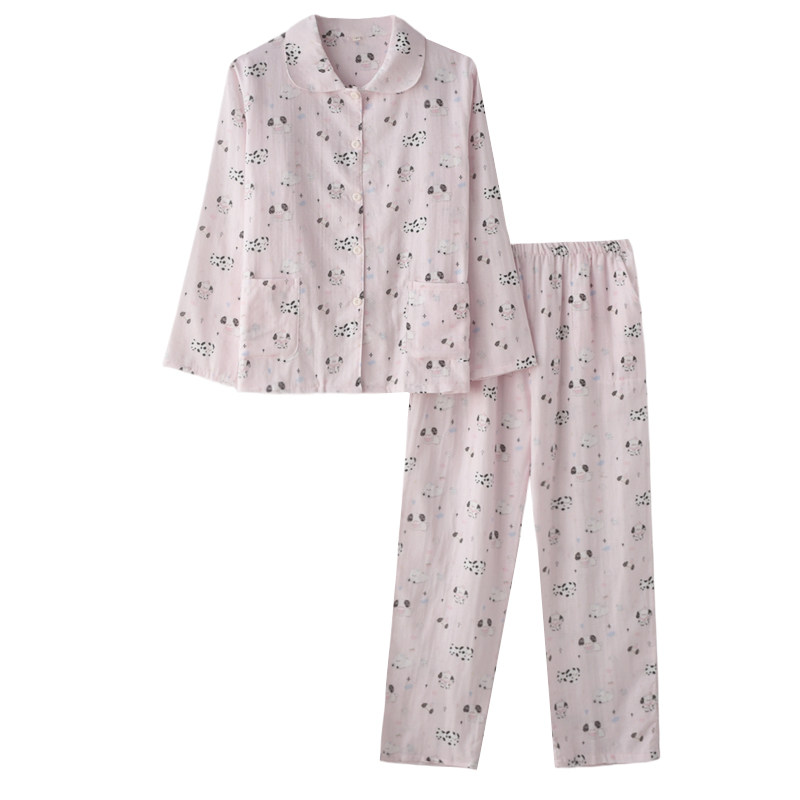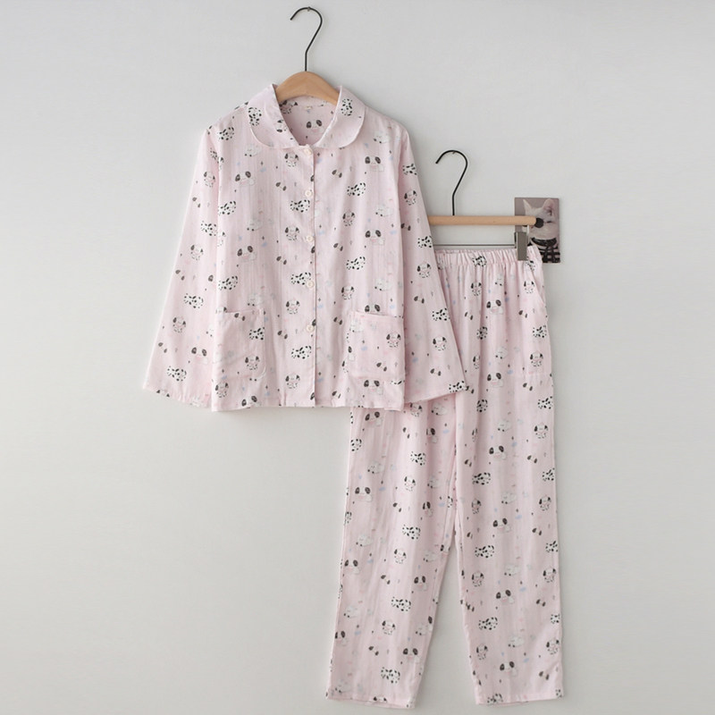 卡通奶萌小狗可爱睡衣女款春夏季纯棉纱布薄款长袖长裤家居服套装