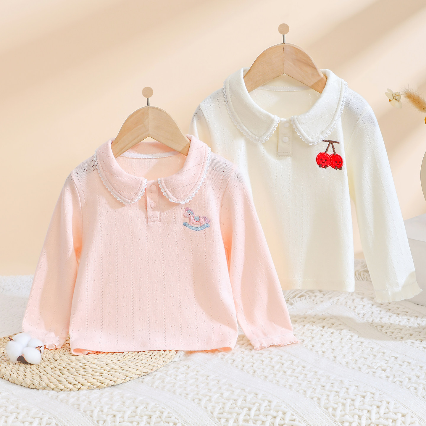 女童打底衫新款公主风春秋宝宝翻领长袖T恤a类儿童纯棉内搭上衣