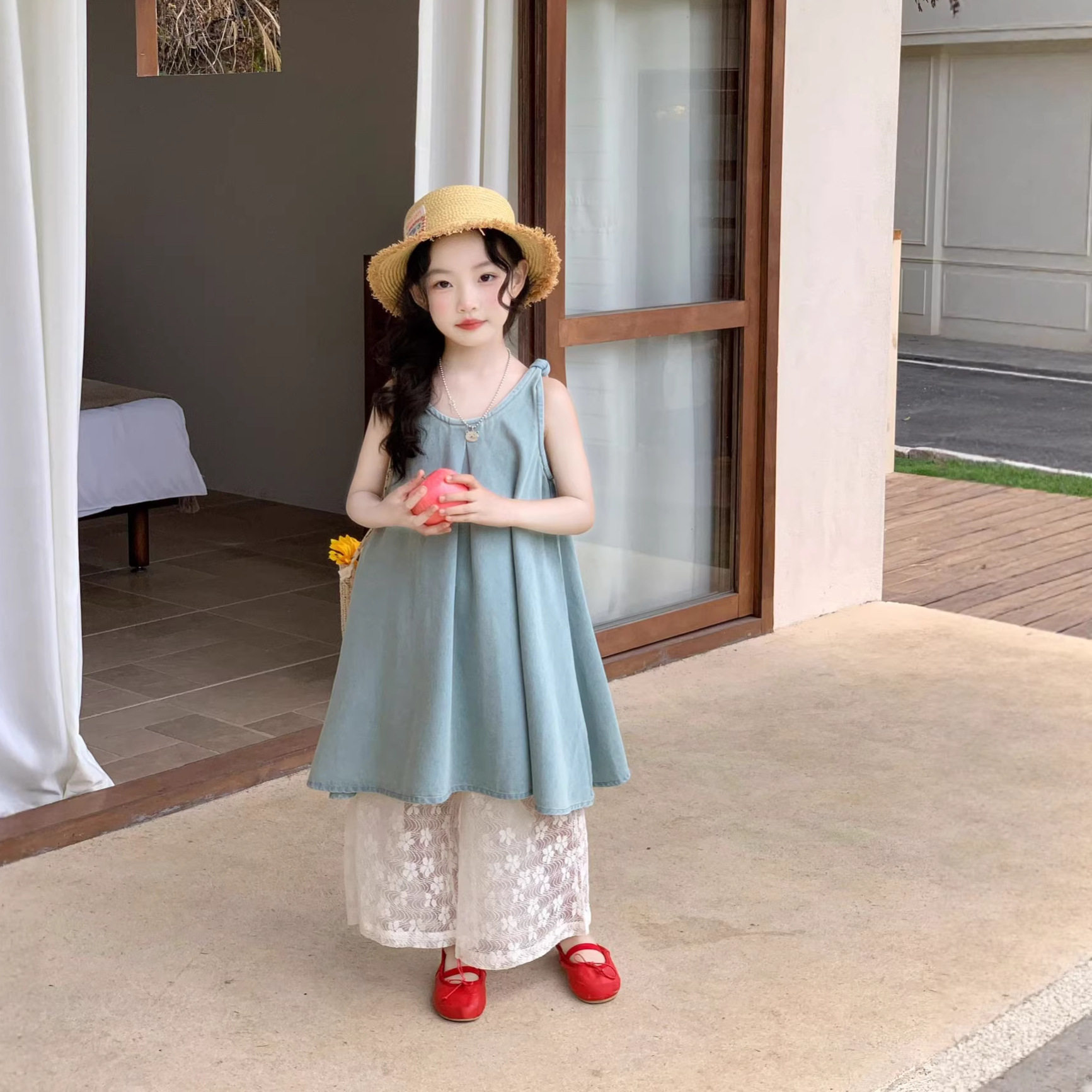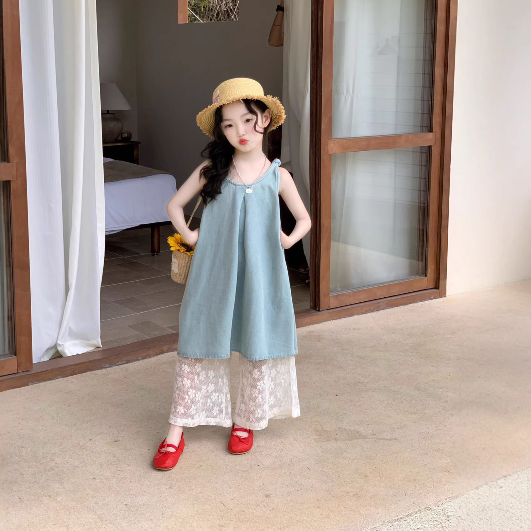 女童夏季无袖上衣裙子套装儿童洋气韩版两件套女孩时尚夏装阔腿裤