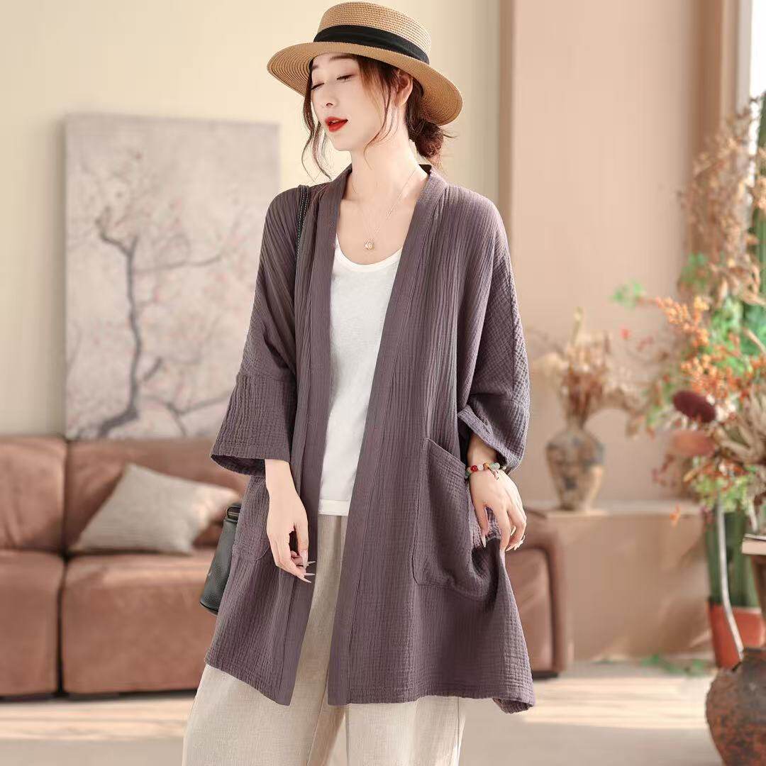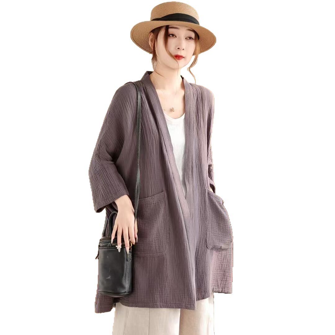 2026年春款衬衫外套女上衣宽松休闲韩版学院风中长款外套亲肤新款