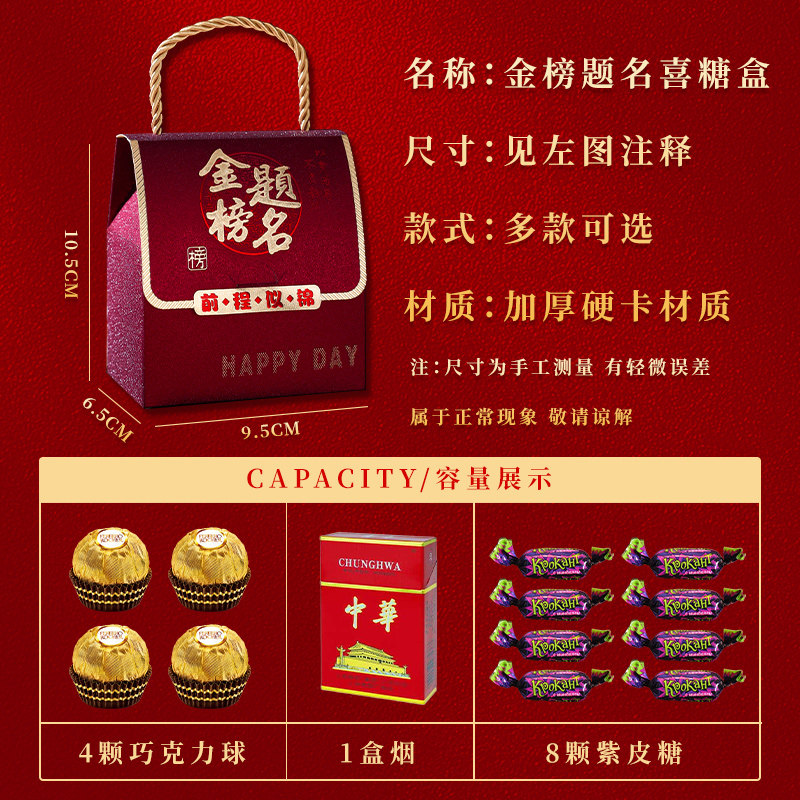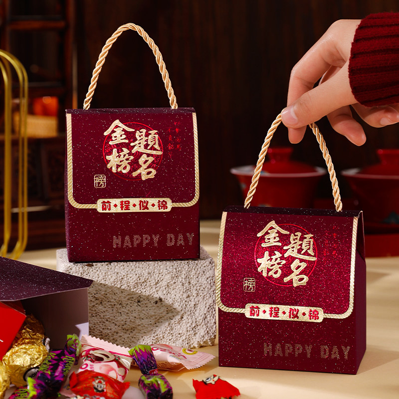 中高考金榜题名升学宴喜糖盒子2026新款回礼盒空盒包装盒糖果袋子
