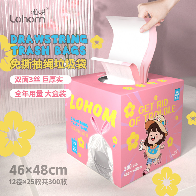 Lohom/啦哄垃圾袋家用特厚加厚免撕抽取盒装双面3丝300只