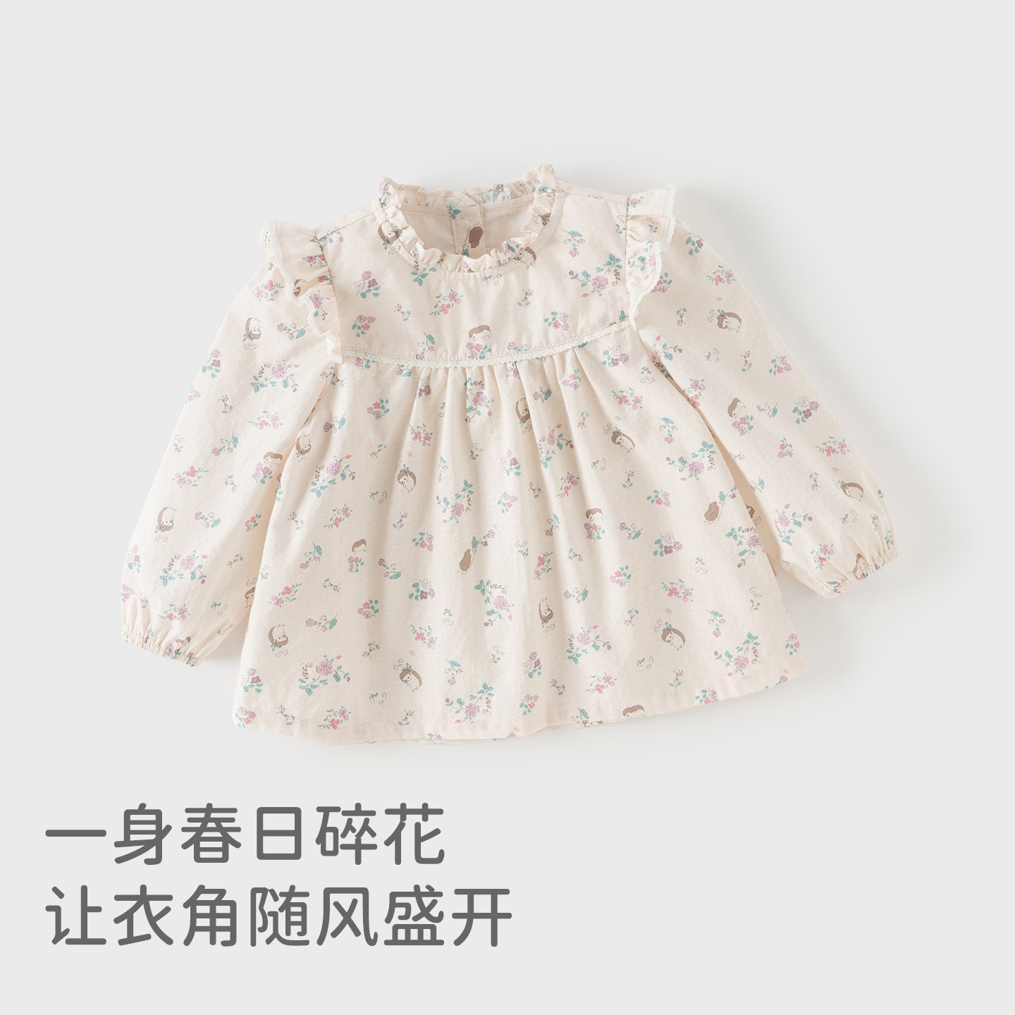戴维贝拉女童碎花衬衫宝宝A类纯棉衬衣2026新款春装儿童洋气上衣