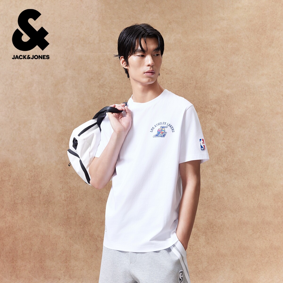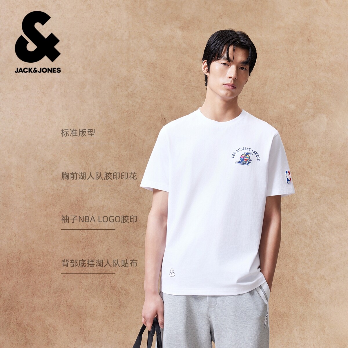 杰克琼斯NBA湖人队夏季短袖T恤联名印花宽松舒适百搭休闲上衣