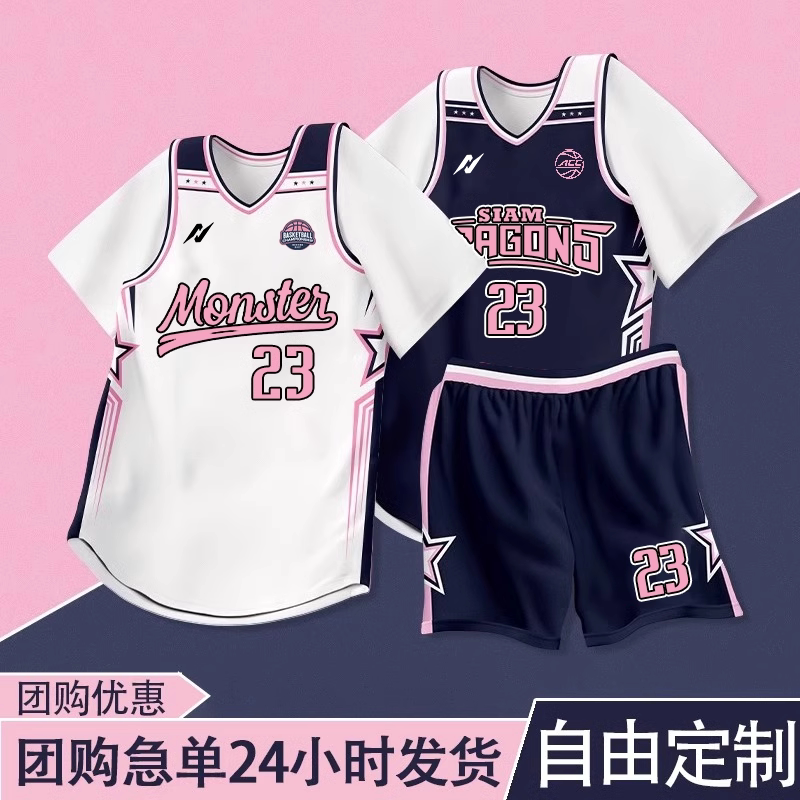 假两件男篮球服套装定制女生球衣比赛训练服学生粉色短袖班服定制