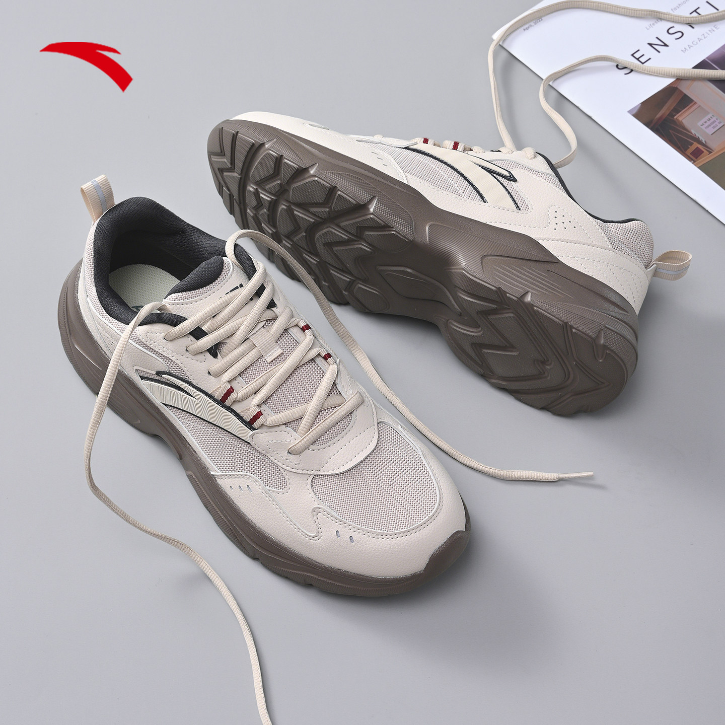 安踏男鞋休闲鞋男款2026春季新款复古潮流老爹鞋减震轻便运动鞋男