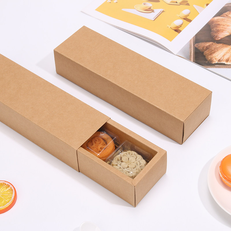 长方形牛皮纸抽拉式马卡龙包装盒50克月饼盒曲奇饼干青团糕点盒子