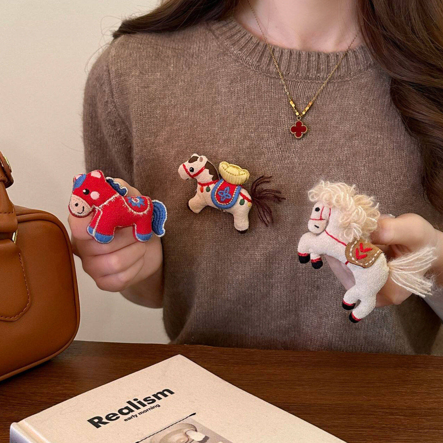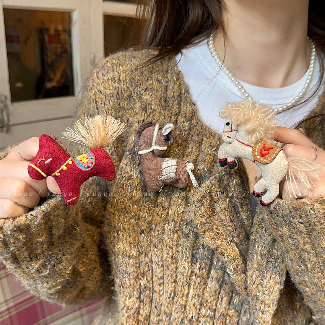 本命年可爱布艺小马胸针女款2026新款毛衣配饰胸花新年儿童饰品冬