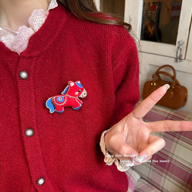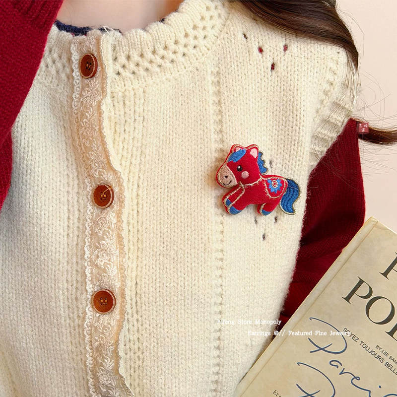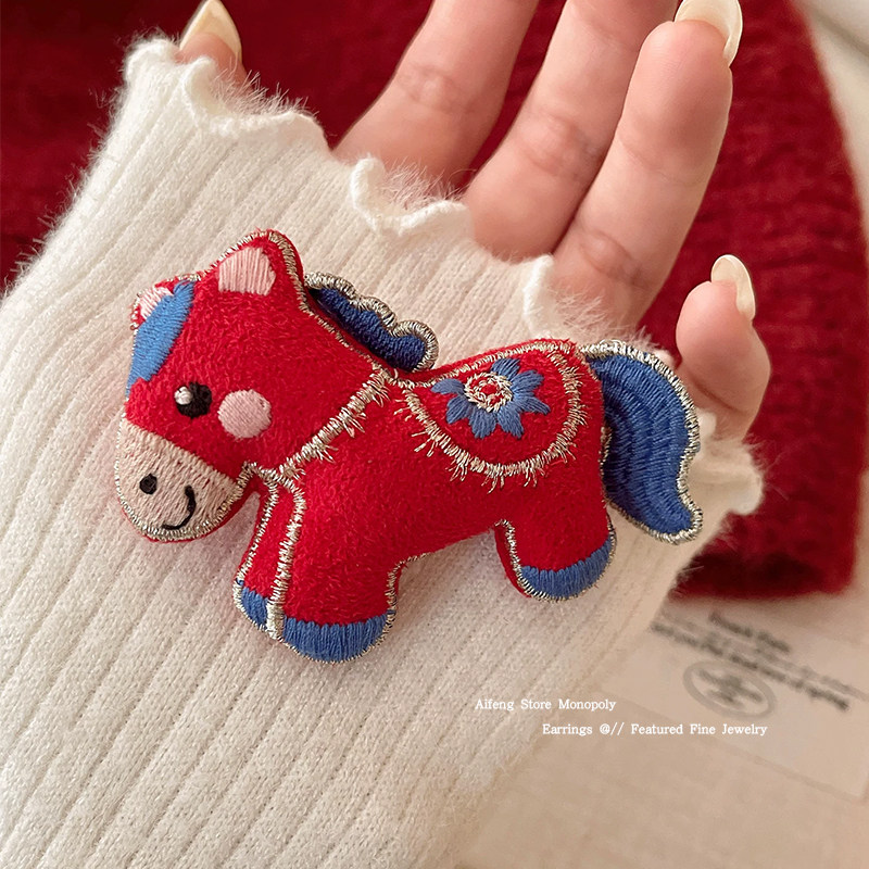本命年可爱布艺小马胸针女款2026新款冬毛衣配饰胸花新年儿童饰品
