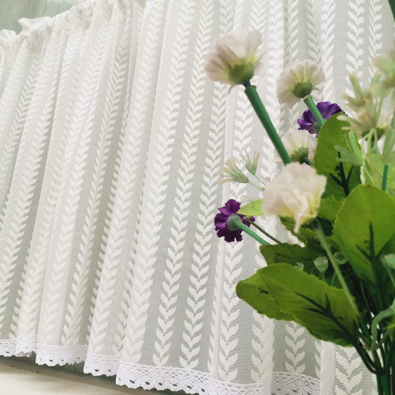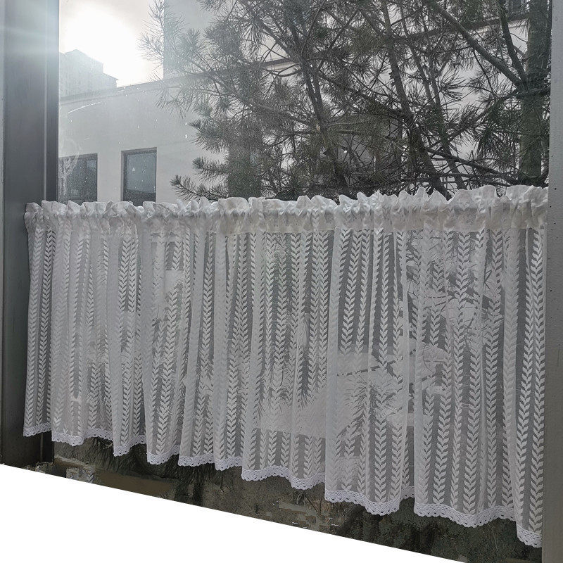m3no批发免打孔白色蕾丝纱帘飘窗半帘厨房门帘魔术贴防尘帘橱柜短