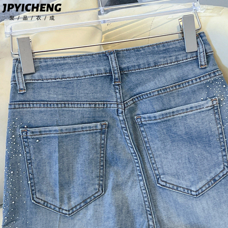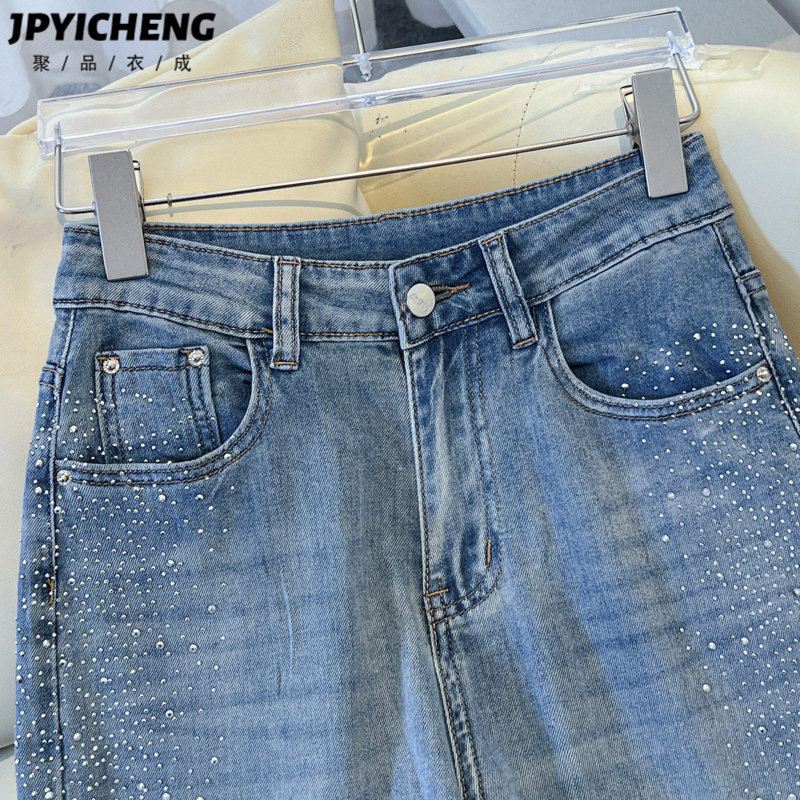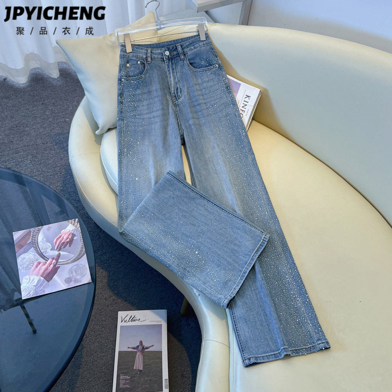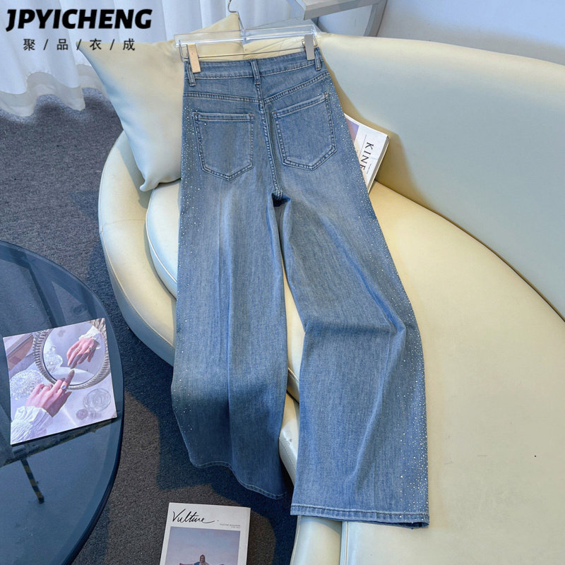 烫钻牛仔裤女款夏装2026新款夏季薄款长裤子宽松阔腿裤大码直筒裤