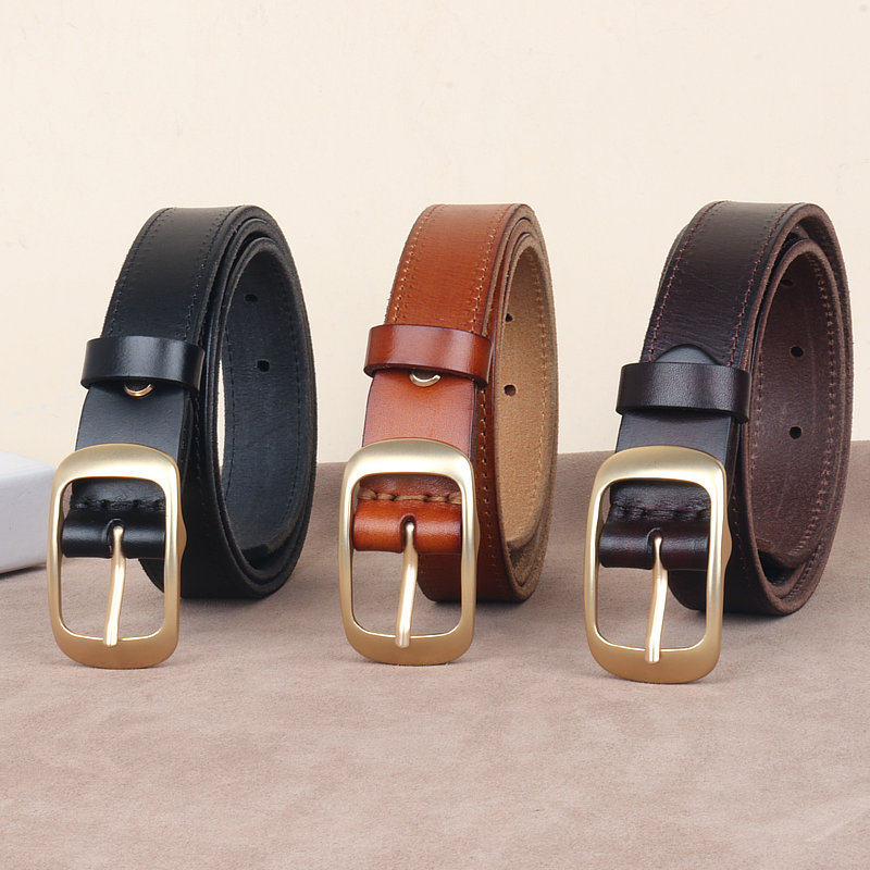 牛永真皮带女款配牛仔裤棕色卡其色头层牛皮手工腰带复古2025新款