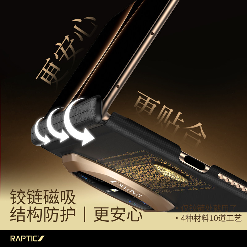 「顺财运」决色RAPTIC适用华为matex7手机壳新款真皮中轴铰链保护X7典藏版超薄折叠屏芳纶纤维x6凯夫拉磁吸壳